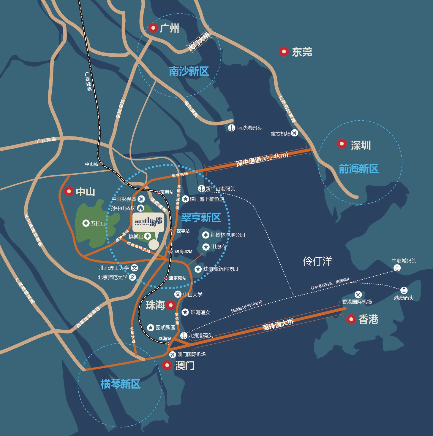 此外,翠亨新區、連同港珠澳大橋及深中通道的發展,令珠三角的四大經濟區串連起來,將經濟效益全面擴展。