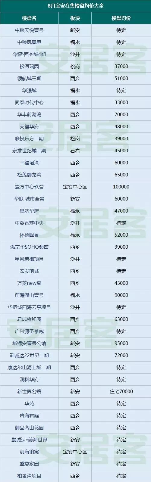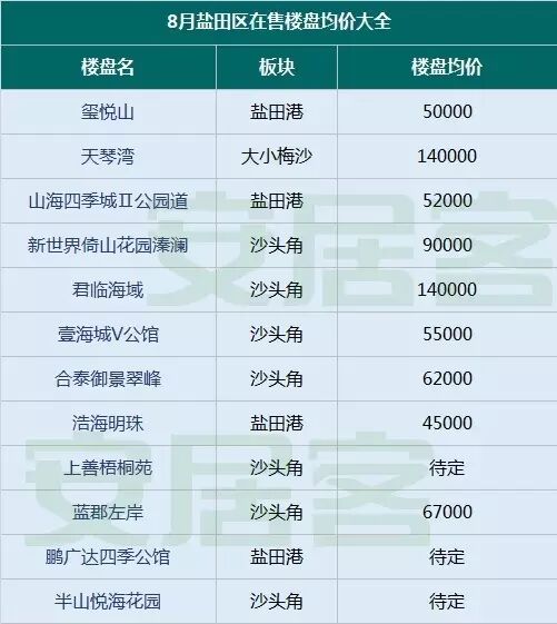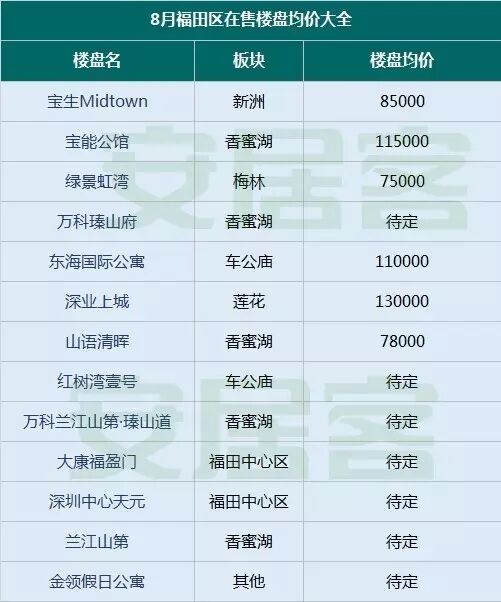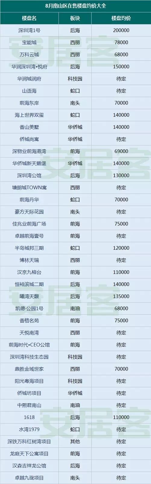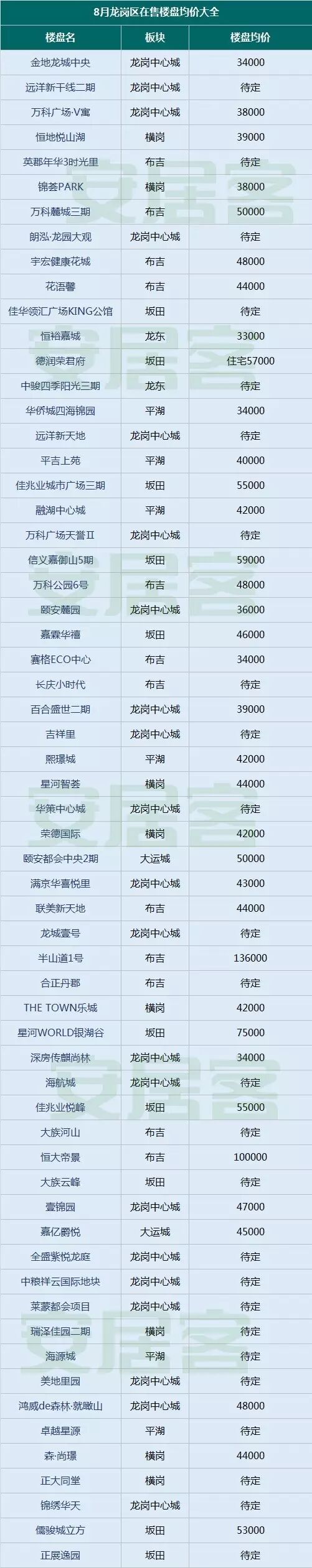 8月深圳7區樓盤價格表!看到最後我哭了...