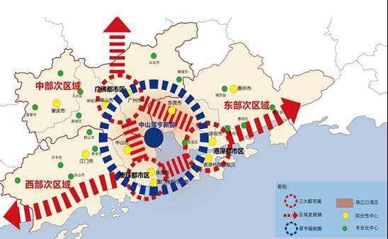 縱觀粵港澳大灣區,位於廣佛肇、深莞惠、珠中江三個經濟圈核心地理位置的正是中山。中山佔據粵港澳大灣區城市群的中部深腹地帶,掌握大灣區在經貿、技術、金融等合作交流的咽喉要道,周邊眾星捧月般環繞著大灣區成員城市,有著無與倫比的地理優勢。